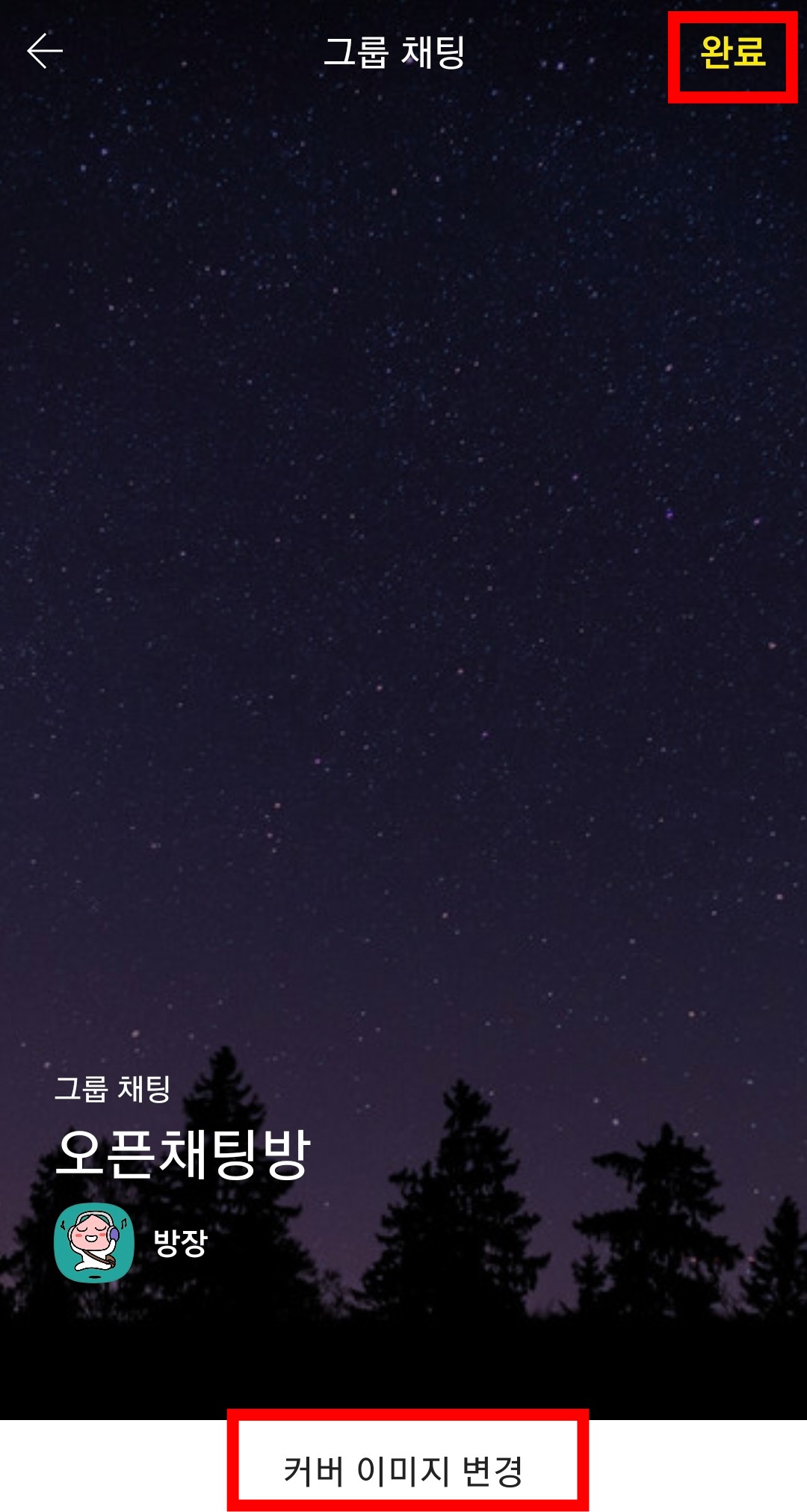 8. 이미지 변경 탭을 누르면 몇 가지 다양한 이미지가 나타납니다. 원하는 이미지를 설정 후 완료 버튼을 눌러주면,