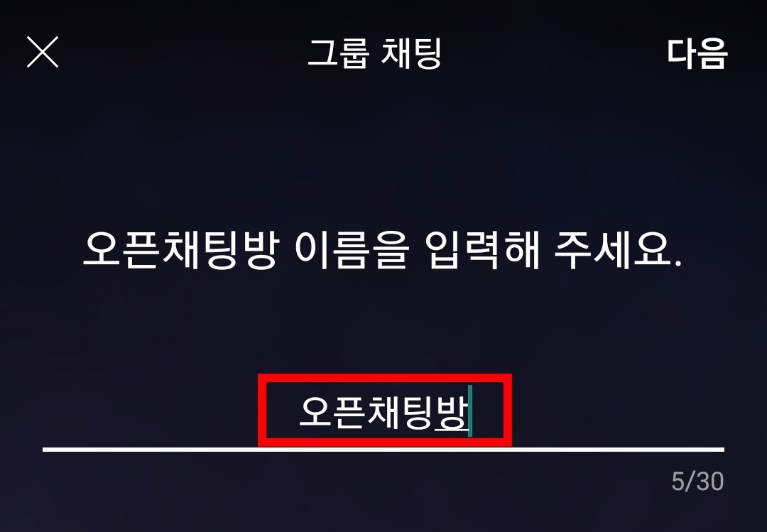 5. 채팅방 이름을 지어서 입력한 후 다음 버튼을 눌러주세요.