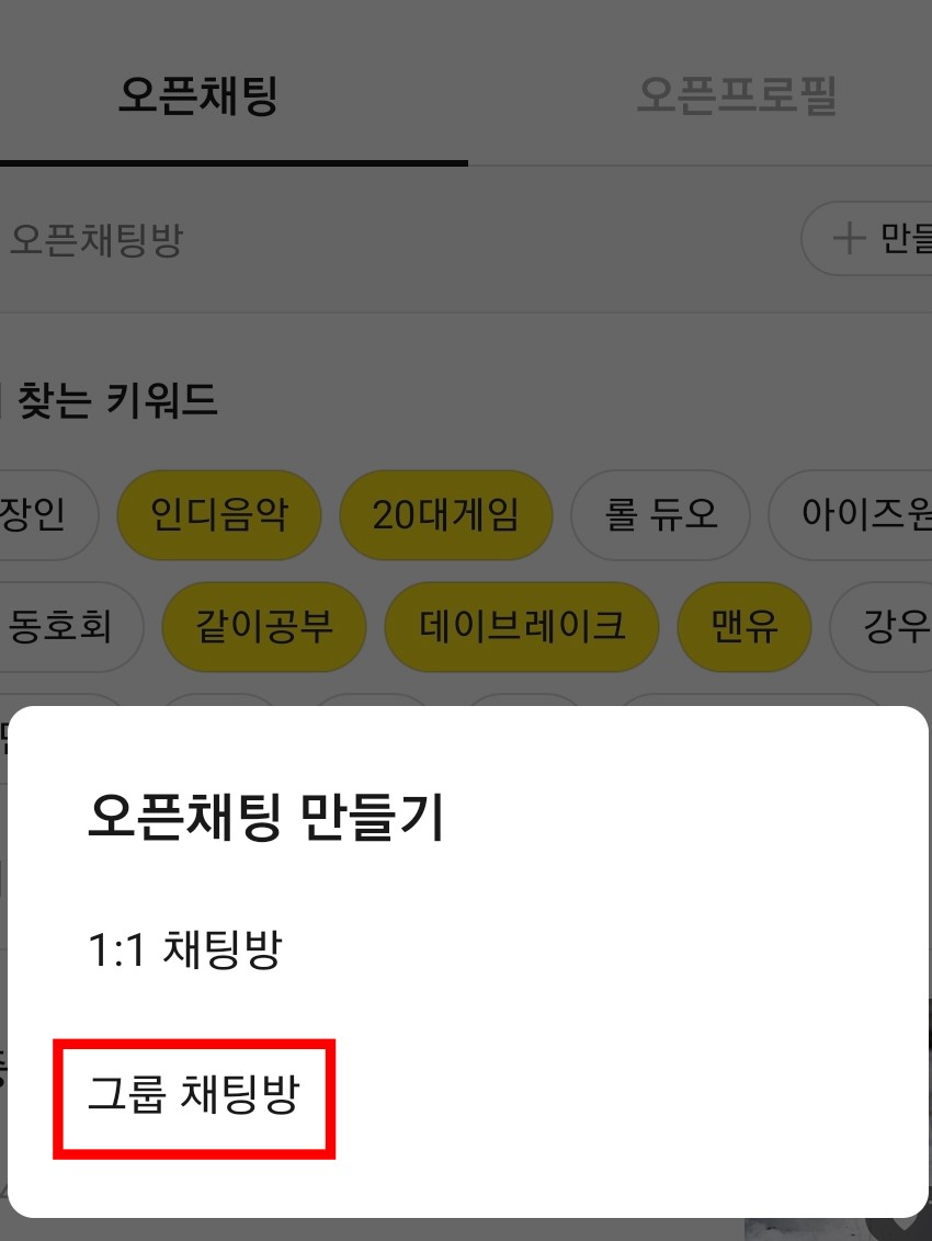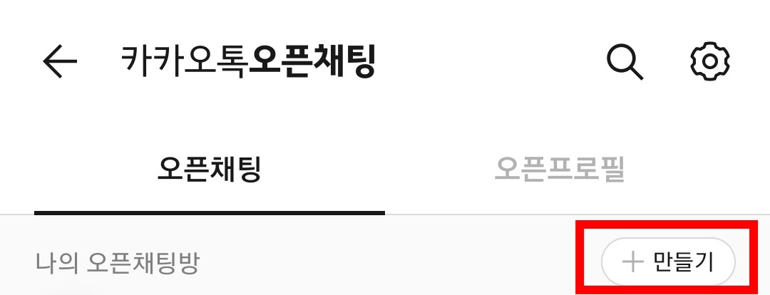 3. +만들기 탭을 클릭하면 오픈채팅방 개설이 시작됩니다.